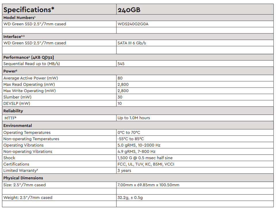 240GB WD Green 3D NAND 2.5" SSD